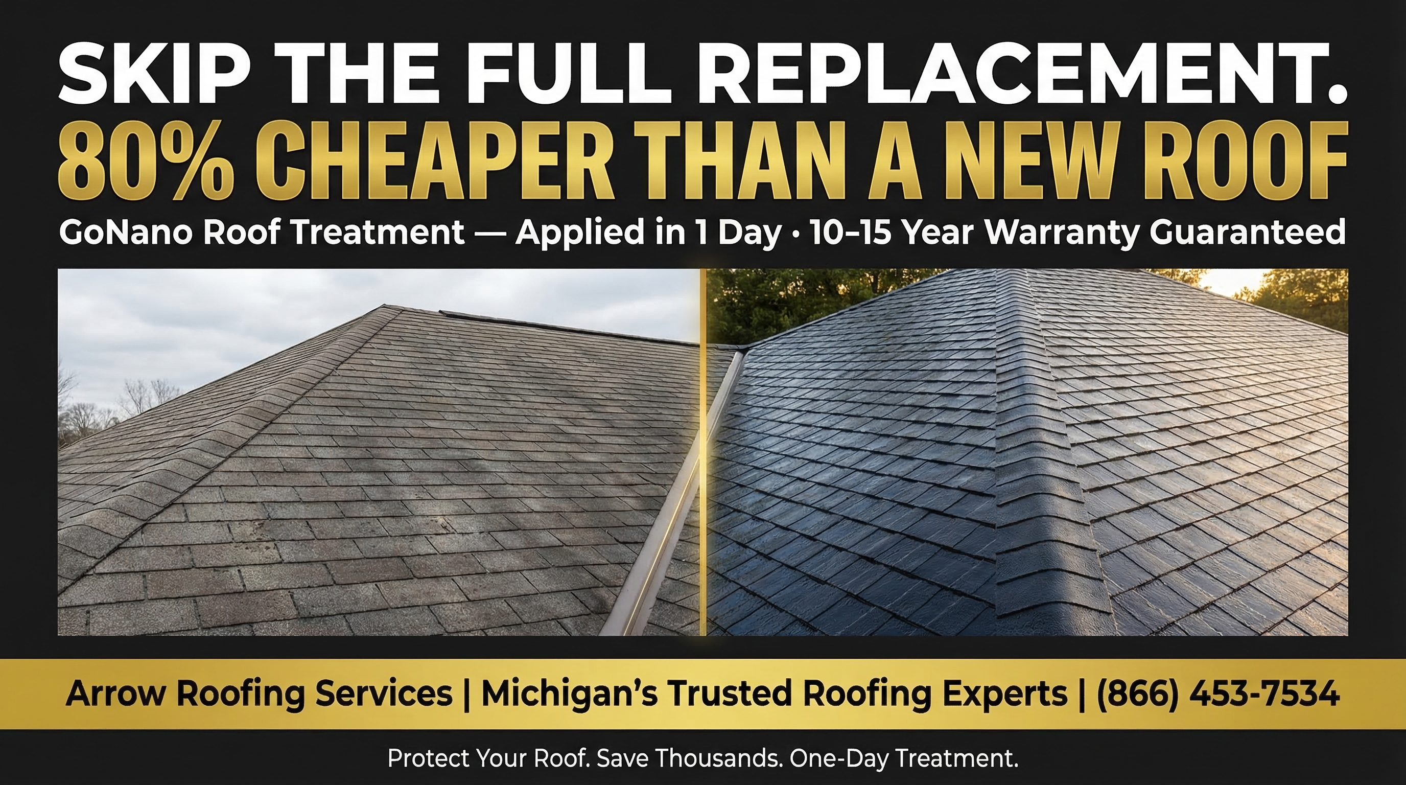 Storm damage → new roof transformation. Strongest social proof format.